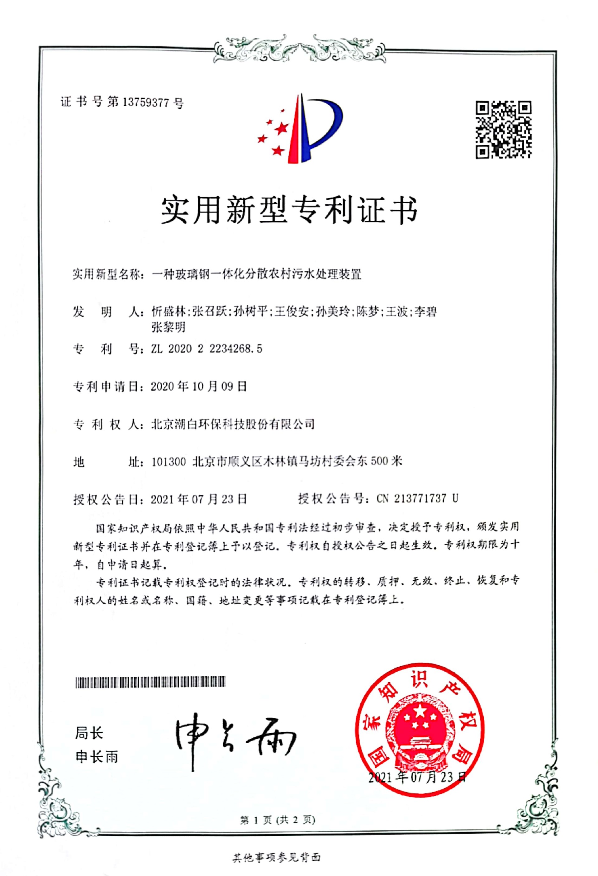 北京潮白环??萍脊煞萦邢薰臼且患易ㄒ荡邮禄肪潮;び胱试囱防玫淖酆闲愿咝录际跗笠担⒉嶙式?178万元,成立伊始就组建顾问专家团队加强创新引领,拥有高级、中级职称人员及各类技术人员占比超过50%。